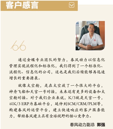 已將40多個涉及財務(wù)、供應(yīng)鏈、生產(chǎn)等各個業(yè)務(wù)領(lǐng)域的業(yè)務(wù)流程固化在K/3系統(tǒng)中