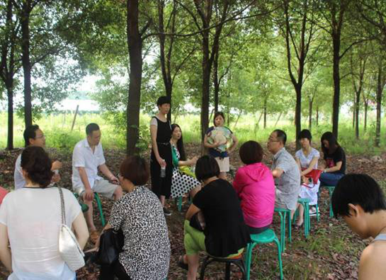 我們在小樹林里準(zhǔn)備了桌椅,低碳又環(huán)保,總監(jiān)們相互交流積極愉快