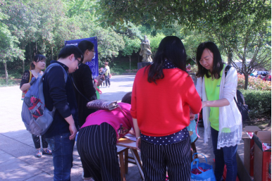 (客戶在簽到處簽到,并在手腕幫上紅絲帶)