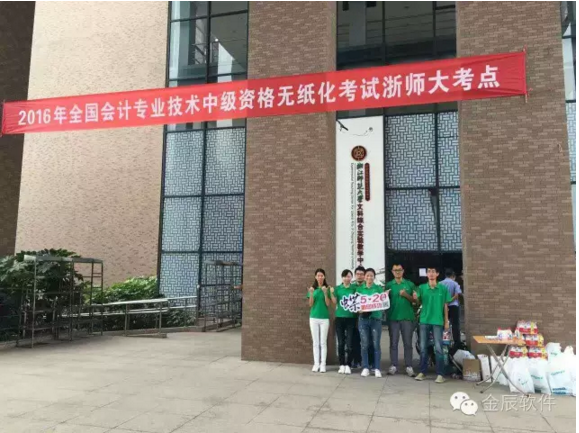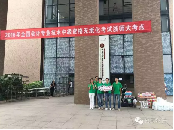 初秋的天氣溫和宜人,2016年全國會計(jì)專業(yè)技術(shù)中級資格考試今天開始啦!浙江師范大學(xué)考點(diǎn)的考生們陸續(xù)趕到考場,準(zhǔn)備開始今天的考試。金華金辰軟件有限公司的小伙伴們已經(jīng)早早的在浙師大考點(diǎn),為每位考生加油!